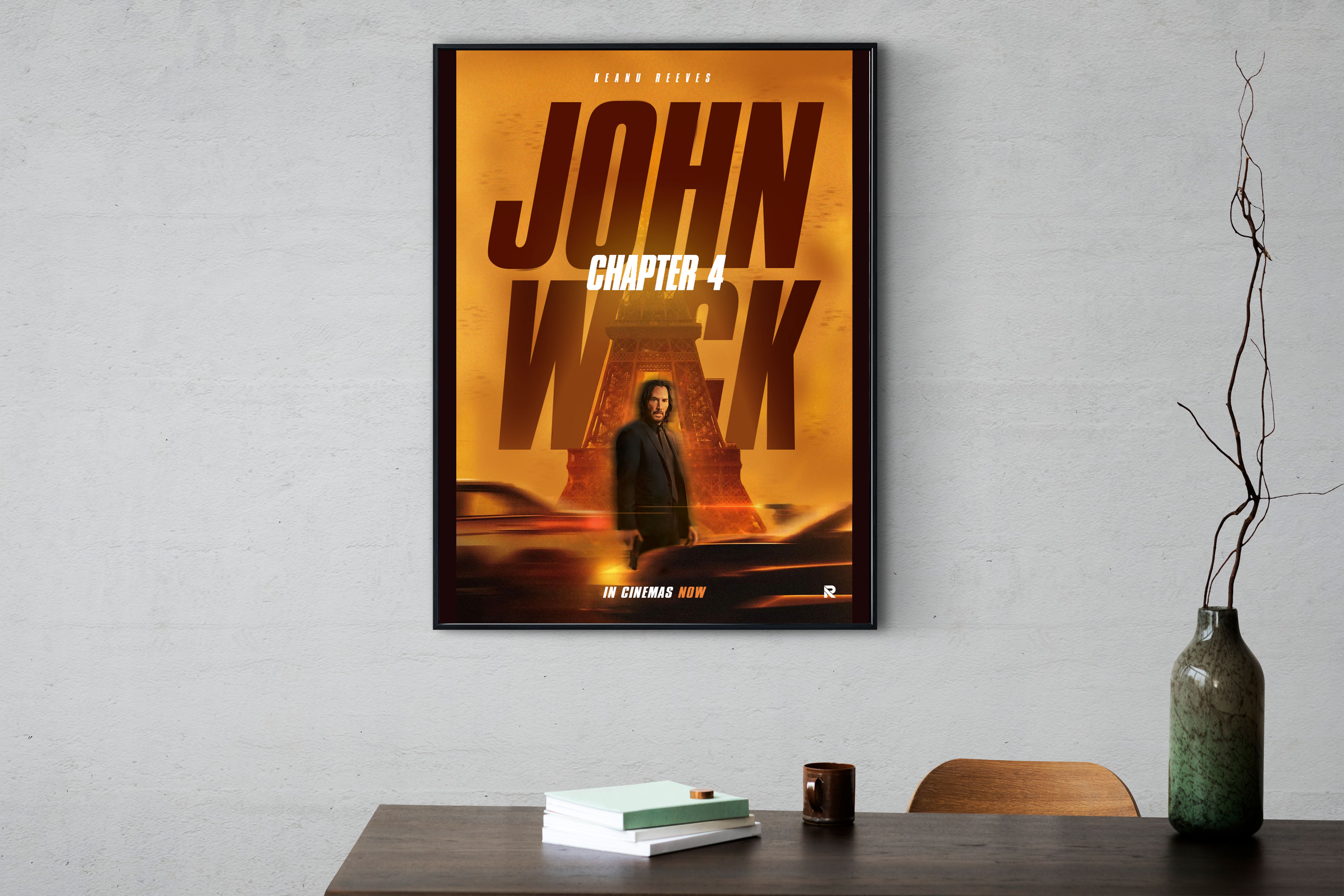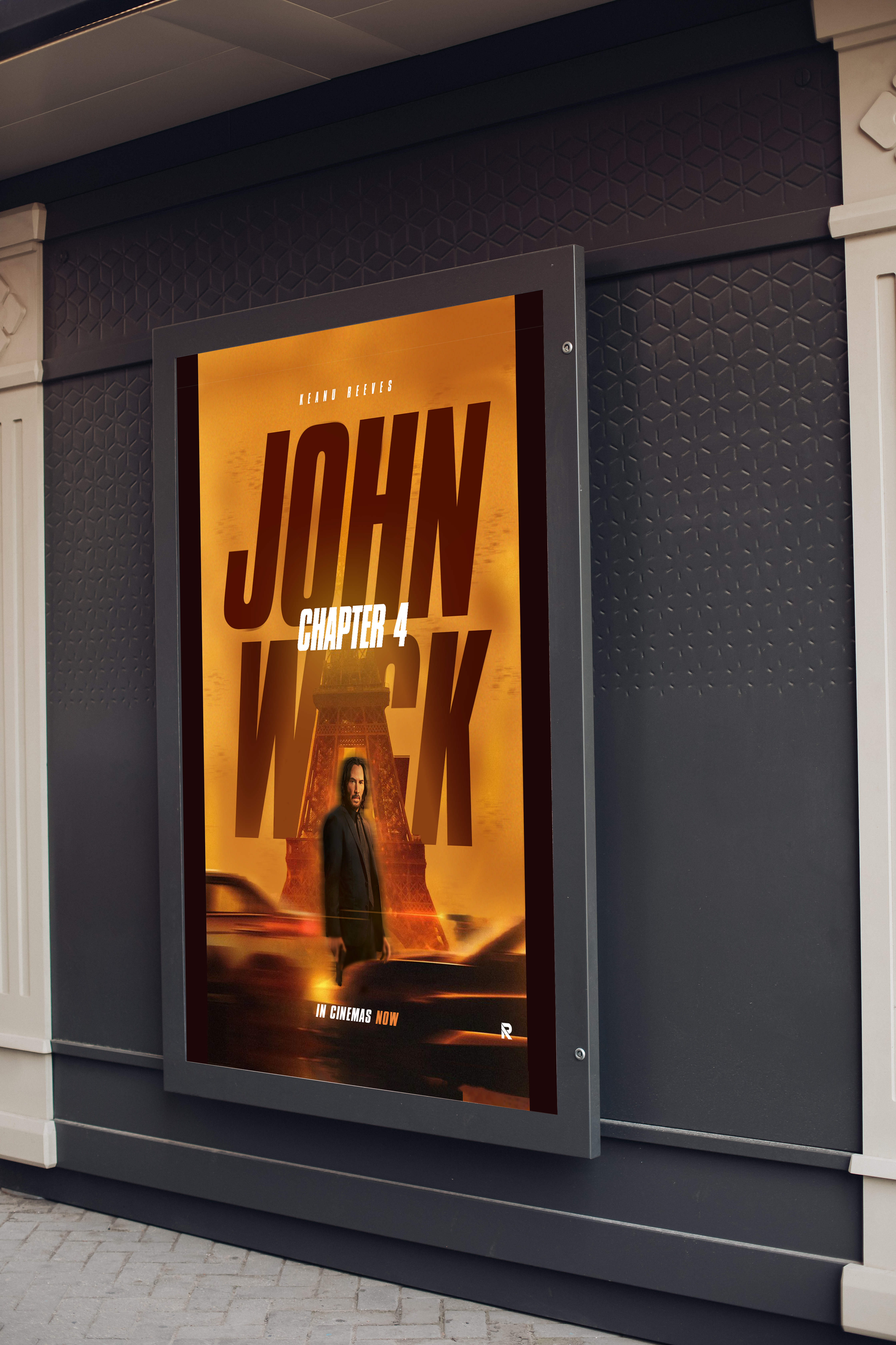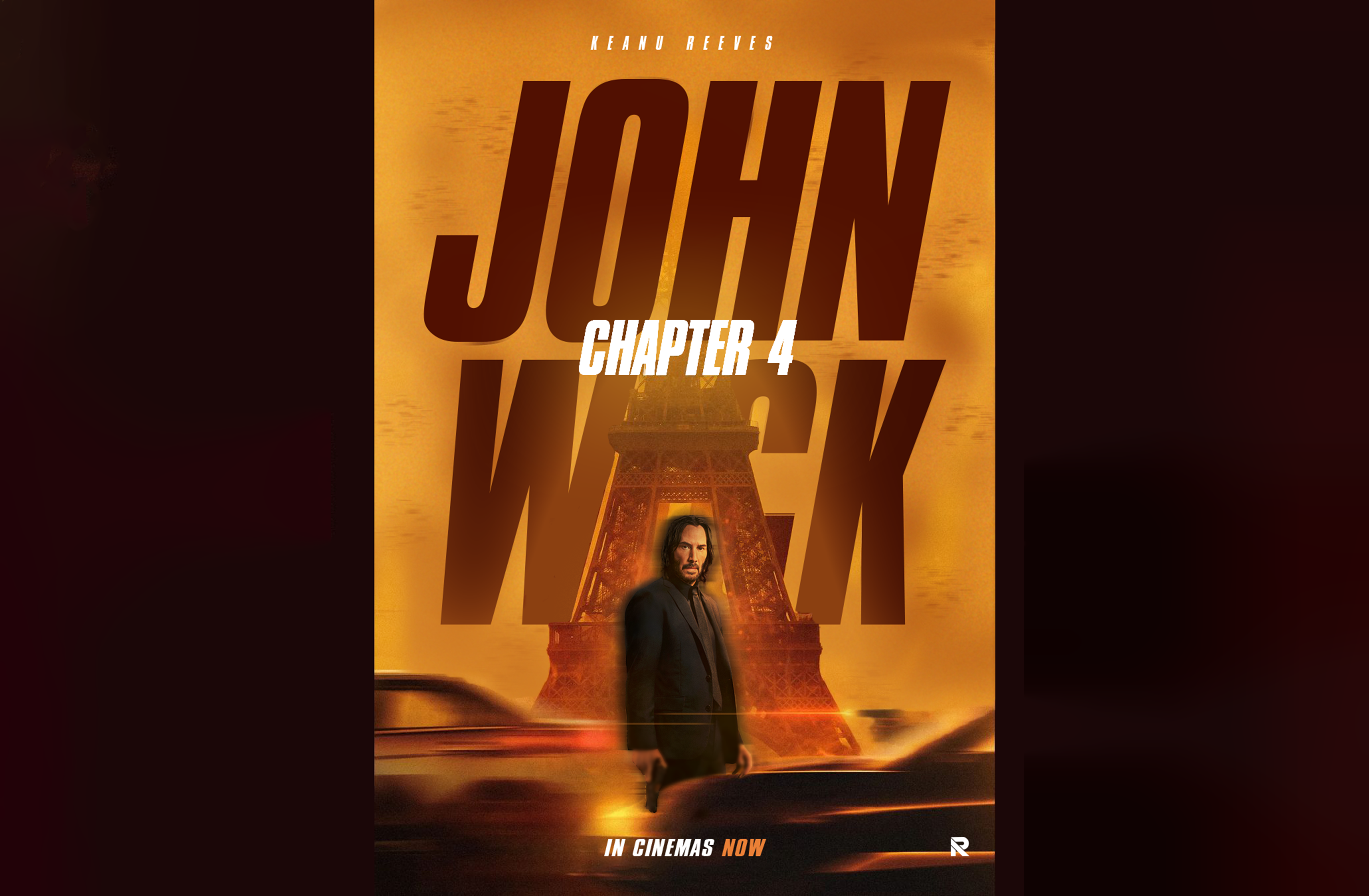 John Wick's weathered yet resolute silhouette takes center stage, embodying determination